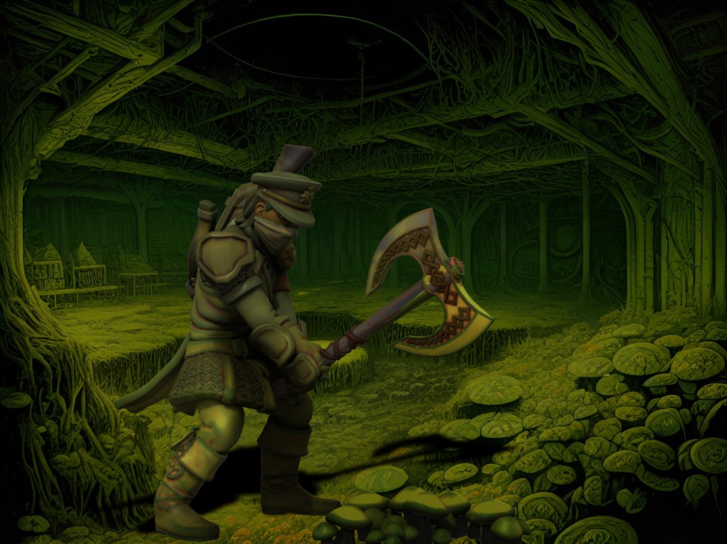 We roused from our long rest, and reluctantly decided to storm the cellars of Owlbear Lodge to seek and destroy the source of the fungal contagion. Makeshift masks on, the magic-users—Jorad “Glass-staff” Luvien, Tegan “Sweet-tongue” Ramigil, and myself—descended through one hatch, while the fighters—Brick, Gunx, and Tolarin—went down another.