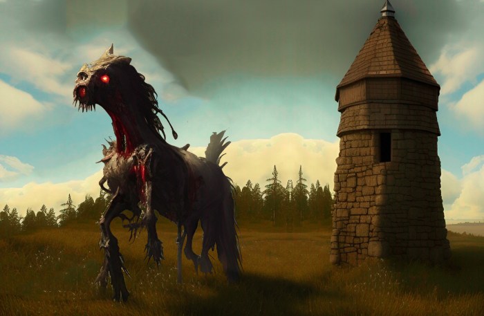 We are back on the High Road today. We recovered our abandoned cart, hitched it to Tegan’s fell steed, and are headed south to Phandalin. We have travelled this road several times now, so the sense of familiarity is comforting. The High Road is so named because it follows the ridge-lines of the rolling hills it passes through. This helps protect it from flooding as well as brigands. The road is wide enough for two large wagons to pass one another, and in many places it is wider. The road surface varies between cobblestone paving, gravel, wood, and hard-packed dirt.