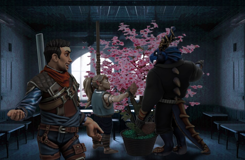 Just after midday, we arrived in Harborage: a small settlement of about a hundred goblins in a valley surrounded by bluffs. Guided by Beshaba, no doubt, we miraculously found the only goblin worth speaking to in this wretched little ghetto: a seamstress and furniture restorer named Din. She caught sight of Gunx, and took his draconic visage as an omen that we had been sent by Maglubiyet to help her. Din explained that she had recently paid a smooth-talking halfling named “Ace” for the deed to Drachedandion Manor, formerly owned by a dragonborn merchant who is now presumed dead. Subsequently, she began to suspect she had been swindled. When Jorad confirmed that she was indeed the victim of fraud, Din enlisted us to investigate the manor itself, up on one of the bluffs overlooking Harborage.