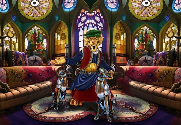 Inside, the space was magically expansive, and sumptuously appointed: more like a palace drawing room than a humble carriage interior. Since the air hung heavy with the weight of destiny, all thoughts of shopping escaped our minds. We inquired if there might be some quest that we could assist her with. Indeed, because of our cunty fellowship’s famed commitment to diversity, inclusion, and equity, Madame Tingletoe was keen to enlist our help.