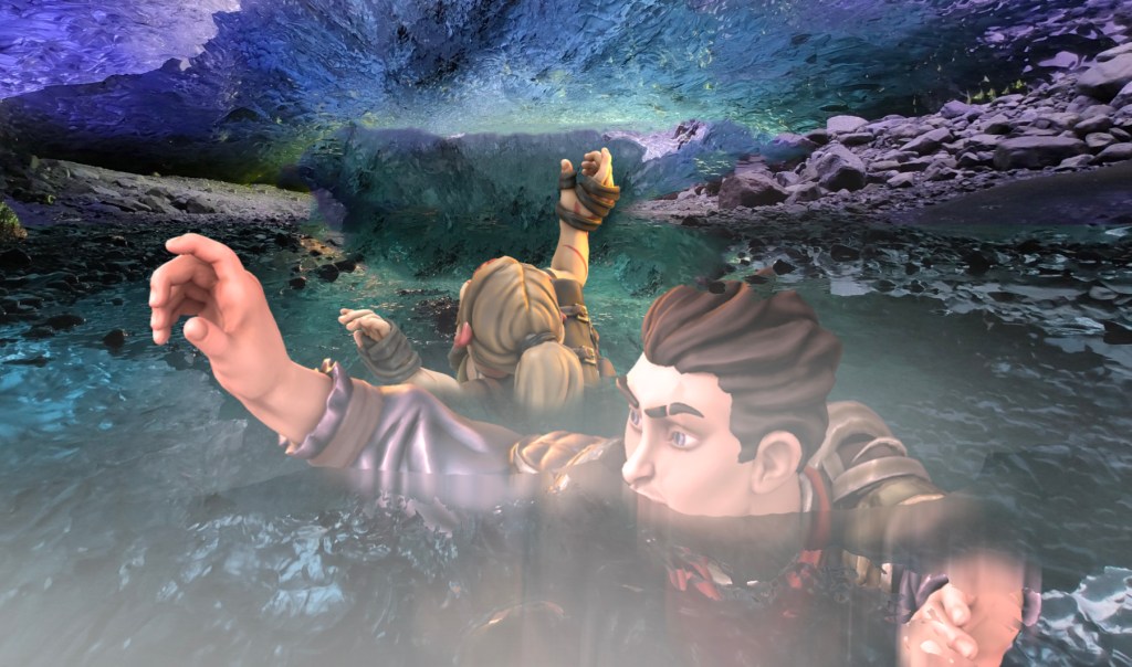 We were curious to see if even greater riches lay ahead, so we continued as a group through the passage I had scouted, and came to another cavern. Here, a hot geyser raged into a steaming pool. We all leapt into the startlingly hot water. I was enjoying it as a pleasant bath, but soon Jorad, Tolarin, Tegan, Gunx, and Brick were swept down a side channel to the east, so I followed. The current was strong and the channel quite narrow, and lined with razor sharp crystals on the sides and bottom. Beshaba spared me personally from the worst of it, but my comrades and I were chewed to shreds as we sloshed down this winding river of teeth, until finally being deposited into a large, deep pool in another cavernous chamber.
