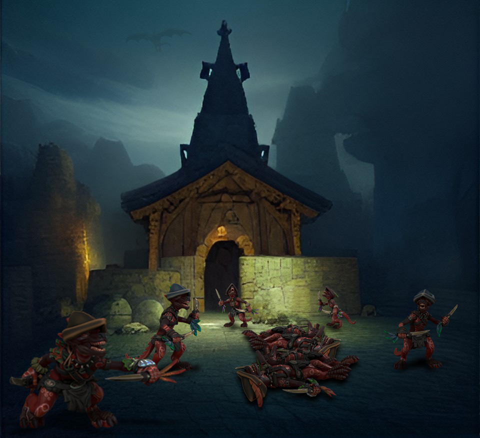 I watched as the cultists Held Tolarin fast with magic, and mercilessly cut down Linan Swift, a brave but inept local woman. Gunx leapt forth to protect her children and their lame father, Cuth Swift, quickly clobbering a couple of kobolds, while Jorad duelled spells with a cultist, felling his foe in a flash. Suddenly freed from his temporary trance, Tolarin just as rapidly fell back under another cultist’s magic sway, along with Gunx too: both brothers became fully frozen.