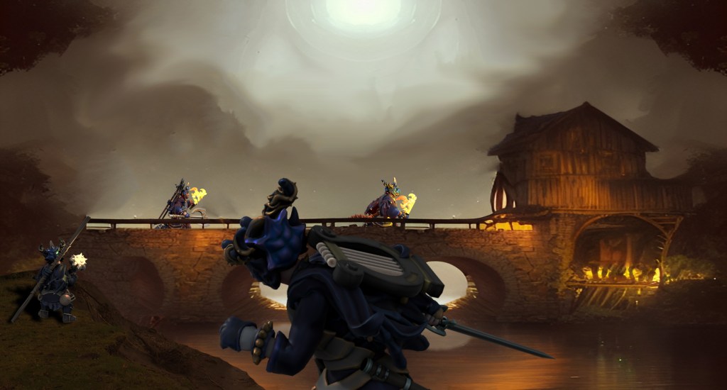 We continued to the mill. Gunx went across the bridge. Kobolds spotted him, and fled instantly, abandoning the small fires they had begun to set at the base of the mill. We all followed Gunx over the bridge, on high alert, wary of attack. Gunx, in the lead, was just missed by a hail of incoming sling stones as the expected ambush came, in the form of six kobolds. Gunx and Tolarin focused on putting out the fires. Brick launched a javelin at the kobolds with expert aim, and Jorad and Tegan both used their spells to great effect, killing all the attackers.
