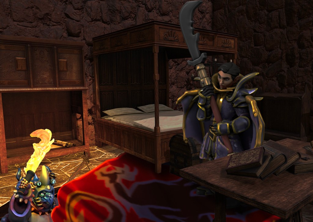 Brick took down one of the warriors with his trusty axe Hew, while Tegan and I finished off the other, jerking the curtain for the main event. Langdedrosa Cyanwrath, lightly armoured with the inky flayed hide of a defeated and desecrated dragonborn, stood alone with spear and shield against the full force of the Fellowship of Cunts. Gunx attacked with fists and feet of fury. Brick lashed out with Talon, famed sword of the Black Hawk. I assailed with Magic Missiles. Tegan mocked viciously, and gave great inspiration to Jorad, who Shattered with enhanced might. With a final swing of Lightbringer, Tolarin ultimately brought Cyanwrath down in a masterpiece of violent teamwork.