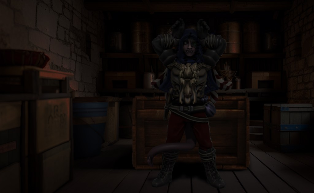 Soon Jorad came to the door, and we conversed briefly. He spoke of supping on turnip porridge, and a communal bedchamber on the main floor being assigned to our group. I told him of my situation, and vowed to keep watch on the loot inside the vault. A few hours later, I heard the unmistakable footfalls of Gunx in the adjacent storeroom, whispering my name rather loudly as he felt his way in darkness. His noise allerted the ill-tempered roadhouse cook, but Gunx managed to convince the gruff servant that he was there innocently hunting rats. The two then left the storeroom together, and I was once again alone.