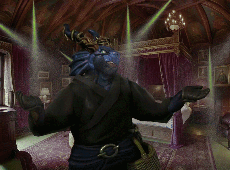 We climbed the stairs and came up to a library, still staffed by a handful of cultists. While the other cunts hid, I entered the room, magically disguised as Azbara Jos, hoping to gain the information we sought through deception. They claimed that only Rezmir, a dragonborn of their order, had the trigger word for the teleportation circle. They indicated that Rezmir’s rooms were on the next level, so we continued to the third floor.
