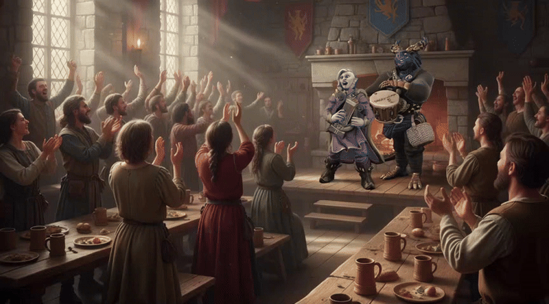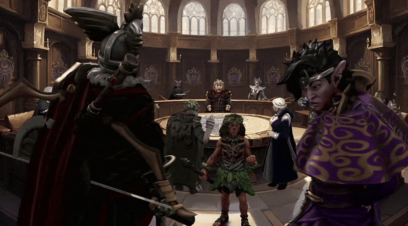 We awoke as Otaaryliakkarnos, the silver dragon we knew in her human form as Elia, set us down in Waterdeep at dawn. With a little time before the Council of Waterdeep was to meet, Tegan and Gunx popped into a nearby common room to entertain some of the City of Splendor’s early risers, treating them to a tour de force impromptu performance of our bard’s most recent compositions. The rest of our party spent the time picking up essential supplies. We all met back at the Council chambers, where Elia presented our prisoner, Neronvain, and reported our victory over Chuff.