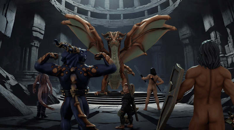 Jorad suggested, with a strange, knowing wink, that we should next visit Tazmikella the Copper. As he removed his clothes, Jorad told us what he knew of “Taz,” as he kept calling her, convincing us all, save Tolarin, to remove our clothes as well. Indeed, Taz seemed pleased with our unclothed forms, especially Gunx. But when she spotted Jorad’s staff (no pun intended), she claimed it as her own. Jorad acquiesced like a gentleman and Taz, transforming into the form of an elven wench, warmly declared her allegiance.