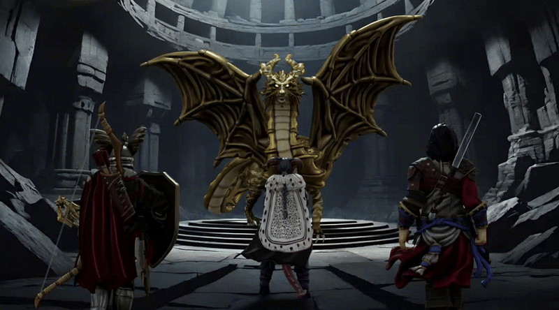 I thought it prudent that we first address the Draconic Council’s leader, Protanther the Golden, and I led the way to his dais, hoping the golden dragon motif of my breastplate might bend the negotiation odds in our favour, Beshaba willing. Protanther professed a dislike for humans and elves as incorrigible, and specifically wanted the elves to make an apology for the Dracorage Mythal. We agreed that his demands were just, and Brick and Jorad, our Fellowship’s human representatives, assured him that King Melandrach would personally make that apology. With that, Protanther was on our side.