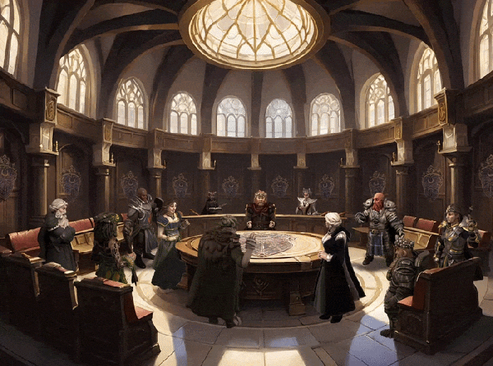 After breakfast, our fellowship met Nyh Ilmichh, and another Red Wizard whose name eludes me, in the audience chamber. The Red Wizard informed us that we would have the backing of Thay against the Dragon Cult.