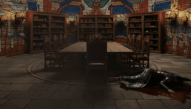 We found ourselves at the base of Xonthal’s tower, with a teleportation circle inscribed upon the ground. A clear path led from here to the sundial, and continued to the village beyond. After memorizing the sigil sequence, I stepped into the circle with my fellows, and we were whisked instantly to a round chamber within the tower, decorated with exotic Maztican animal motifs. The body of a dead cultist lay in a pool of blood on the floor.