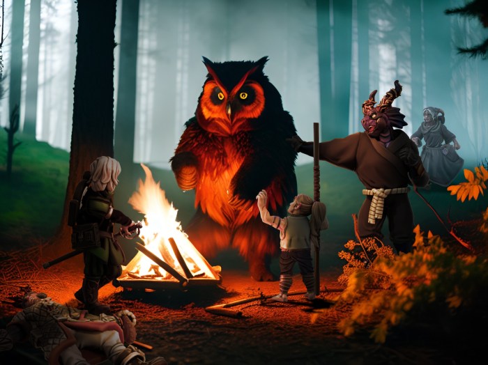 Unfortunately for us, or camp was disturbed in the middle of last night by a rampaging owlbear. Unfortunately for the owlbear, we were not the easy meal is was looking for, so it fled, hooting hungrily into the night. The rest of the day passed by uneventfully. Blessed Beshaba, please, enough with these ominous owlish … Continue reading 30th of Kythorn, 1491