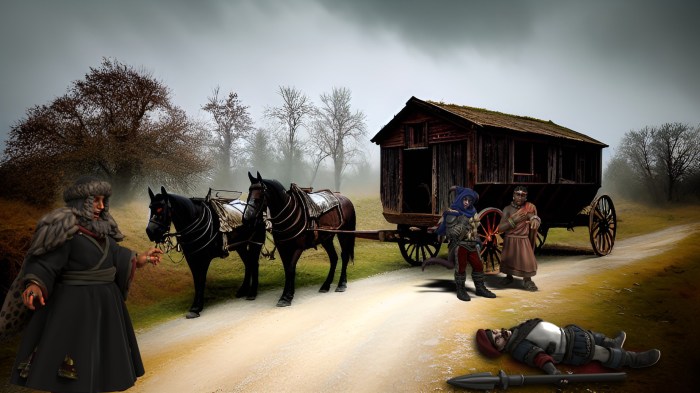After five wary days of travel, our caravan has miraculously passed through The Trollclaws without attack, thanks ever be to Beshaba. As a bonus, fatal misfortune has befallen one of the cultists, Lady Doom be praised. We awoke this morning to the happy news of murder: a cultist wagon crewman evidently slain by short sword. … Continue reading 13th of Mirtul, 1492